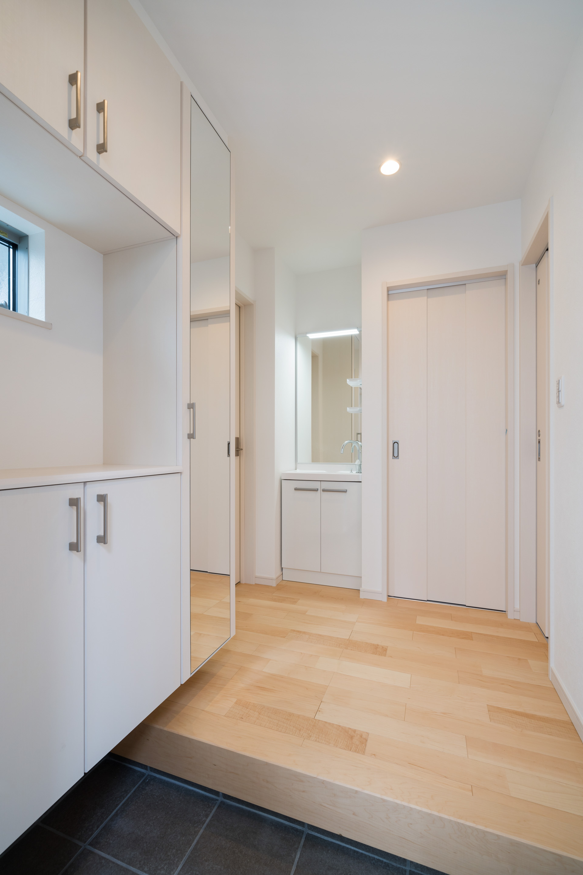 玄関に洗面台を設置。リモートワークにも使える納戸もご用意。