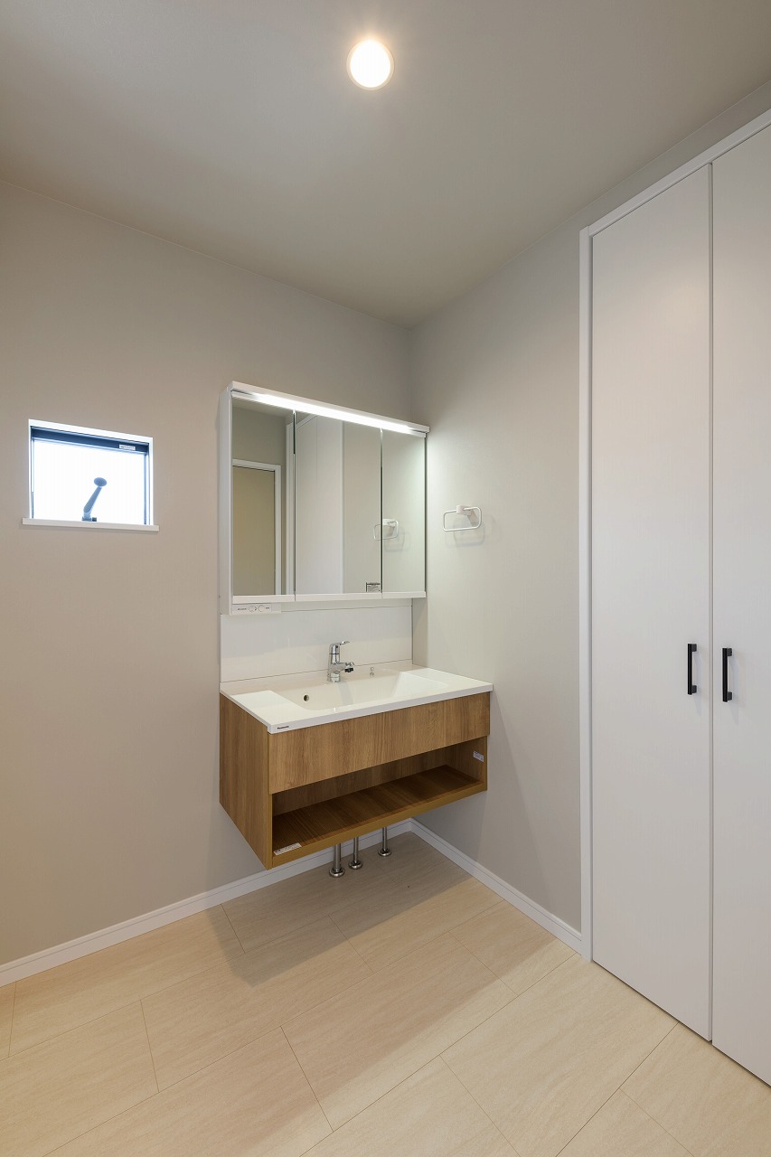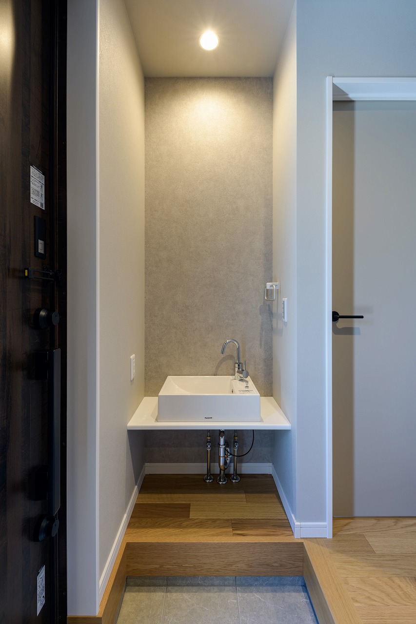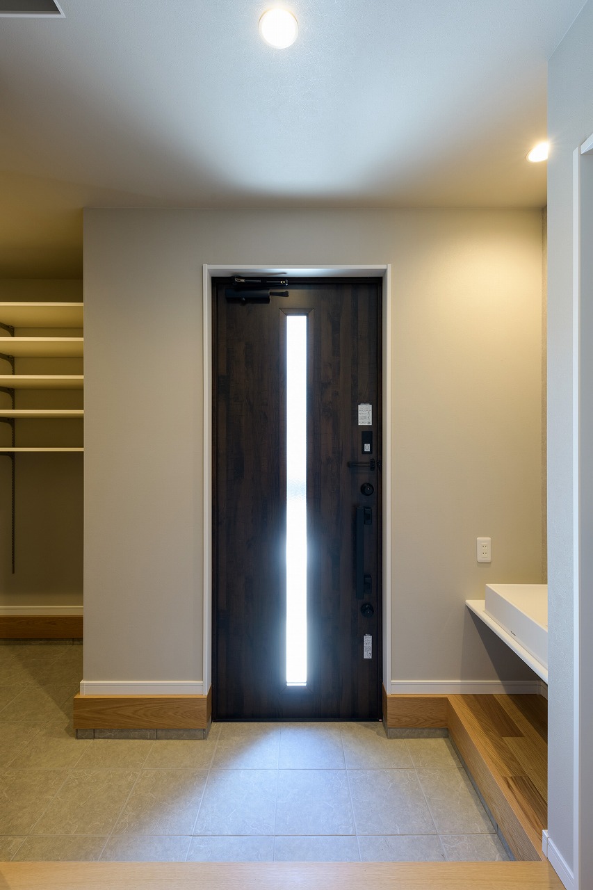 玄関に広々シューズインクローゼットと洗面台を設置。