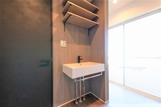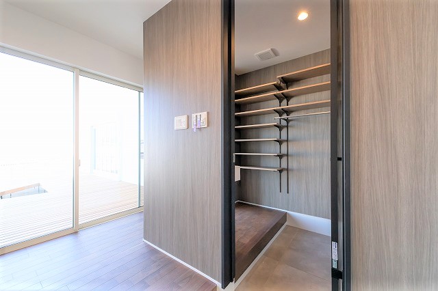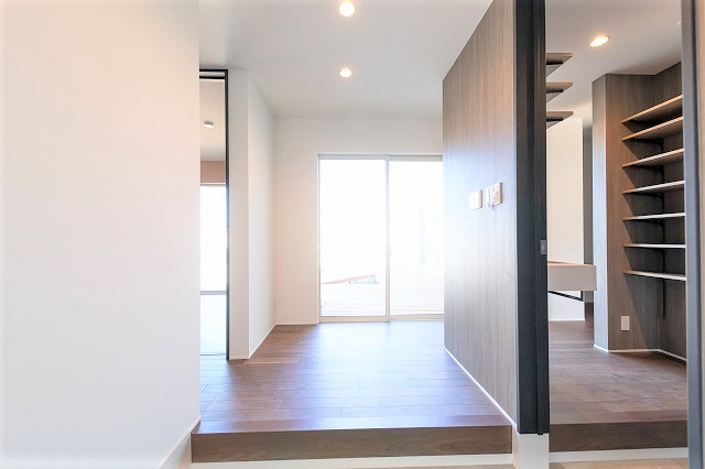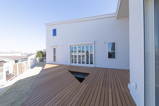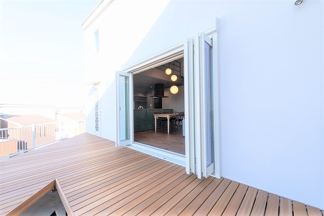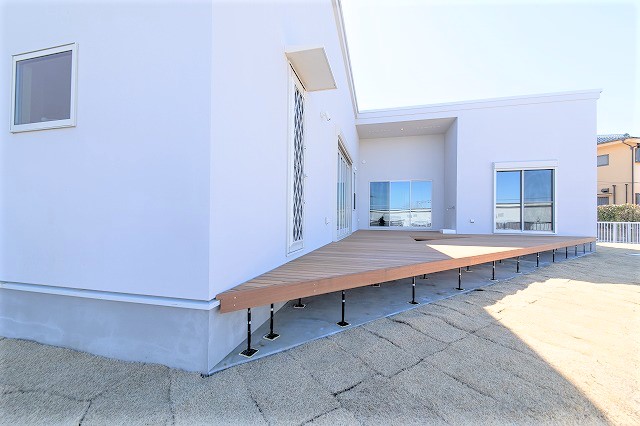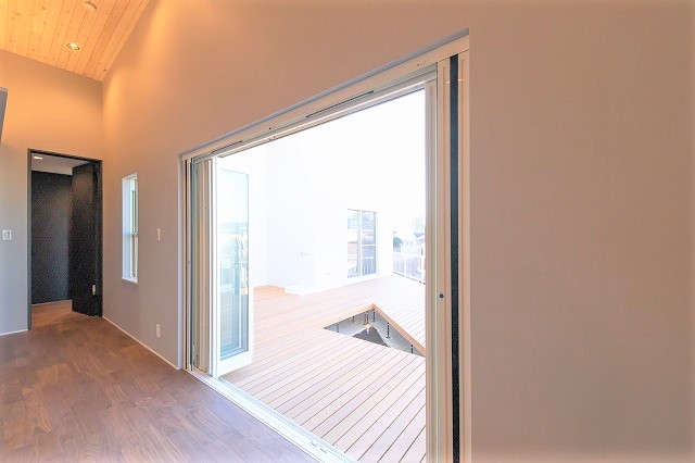 2ヶ所から出入りできる中庭ウッドデッキ♪