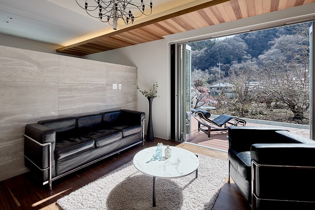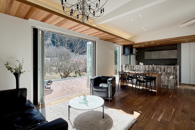 リビングの扉を開け、広々ウッドデッキ! 梅林広がる四季を愛でながら解放感あふれる100坪越えの敷地♪