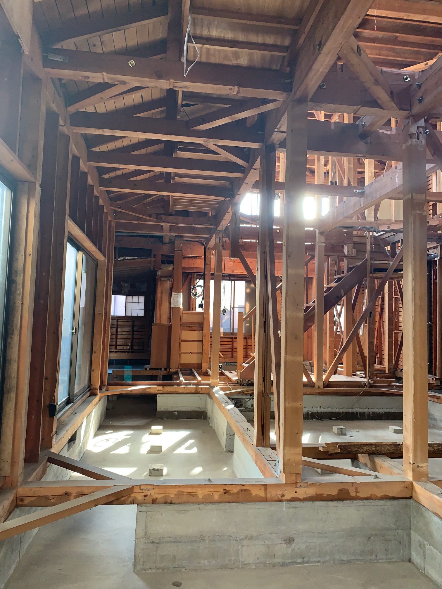 築25年の注文住宅をフルリノベーション。和室中心だった間取りを洋間中心にして、延床面積55坪の大型間取りを吹き抜けの部屋を作り解放感と、明りを取りいれていきます。