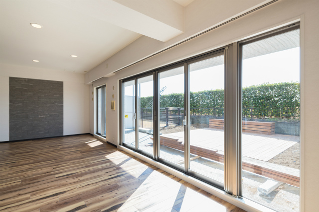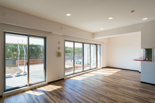 リビングから広い専用庭を一望。大き目の窓から日差しもたっぷり♪